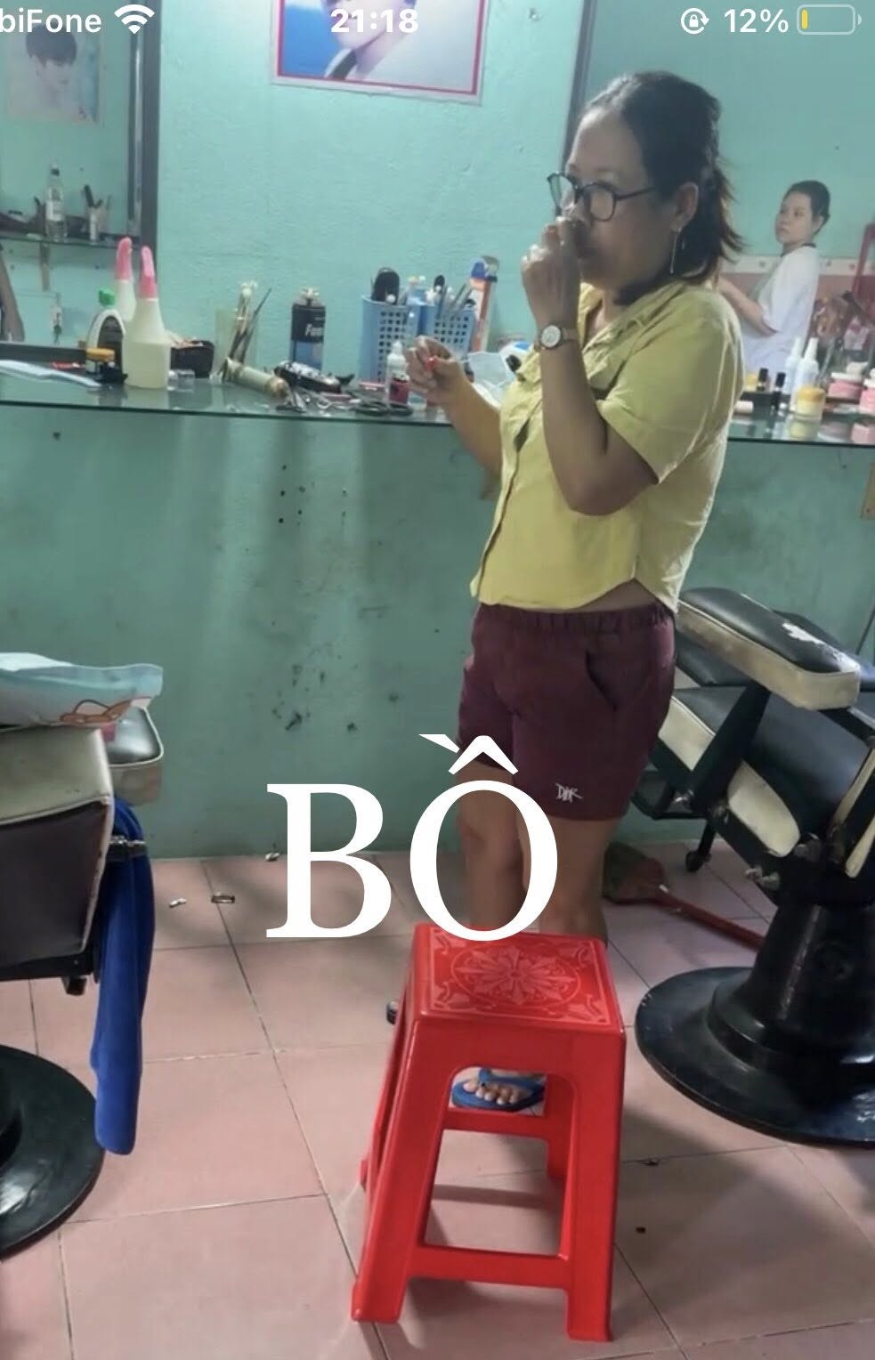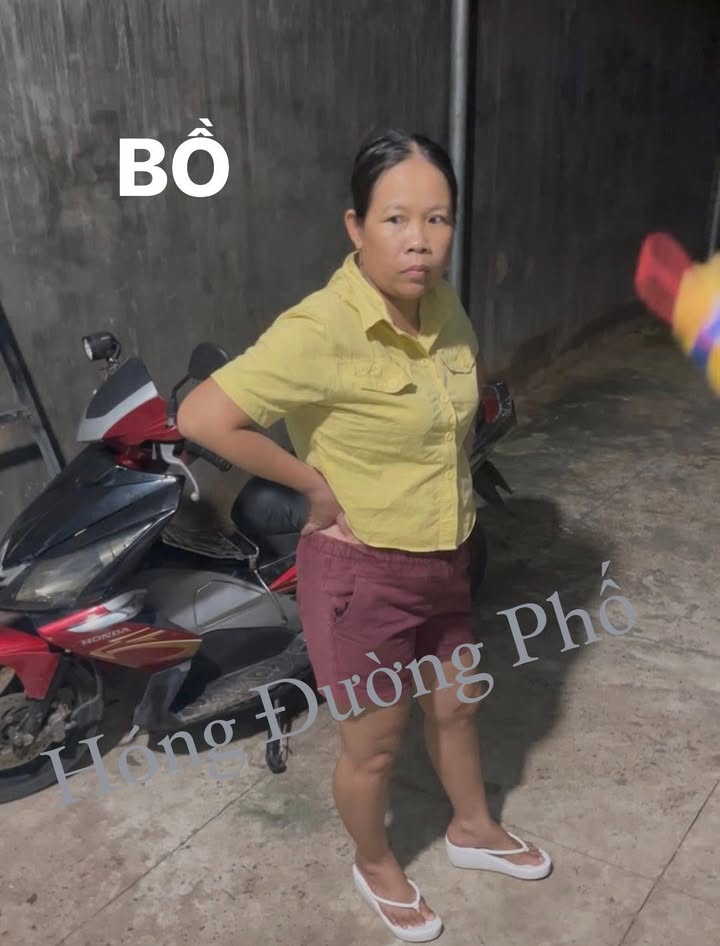 Còn bên kia “bồ” lại giản dị đến mức khiến dân mạng phải dụi mắt mấy lần: áo sơ mi vàng, quần đùi đỏ, dép lê trắng, dáng vẻ mộc mạc chẳng chút phấn son.