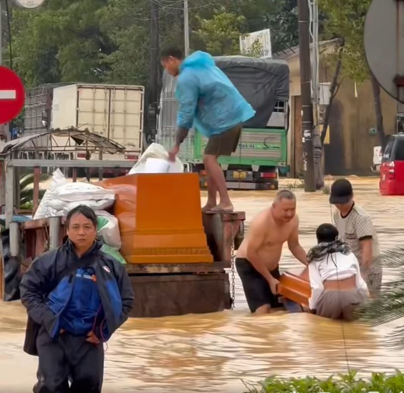 Trên bờ, người dân Huế đội mưa ngóng theo, đôi mắt ai cũng đỏ hoe. Cũng ở Huế, hình ảnh người dân đi mua quan tài: “nước ngập tới ngực mà vẫn phải lo hậu sự cho người thân.” Những tấm áo mưa sũng nước, những ánh mắt nặng trĩu tất cả tạo nên bức tranh đau lòng về sự khắc nghiệt của thiên tai miền Trung.