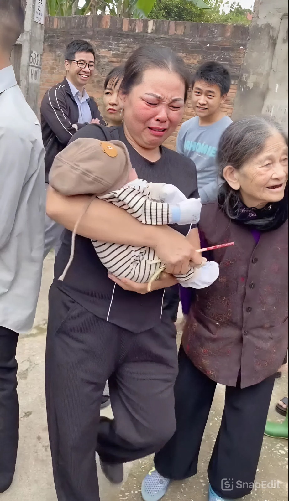 Khi con đầy tháng, Giang đưa con về quê chồng cách nhà 170km. Giây phút tiễn con cháu ra xe, mẹ kế của cô bật khóc thành tiếng vì thương con, nhớ cháu.