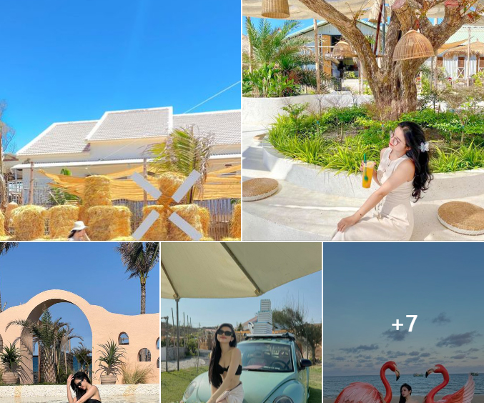 Bãi biển cực đẹp với những chú hạc xinh xinh Khu coffee và vườn hoa lên hình lung linh Có cả khu farm trãi nghiệm cho các bạn thú ăn