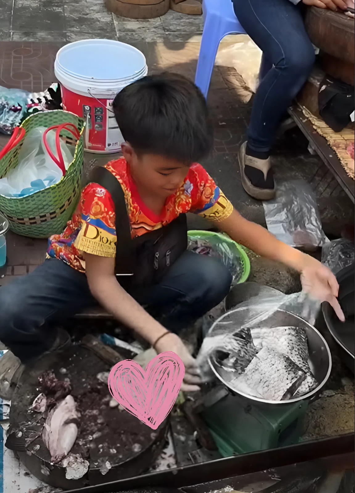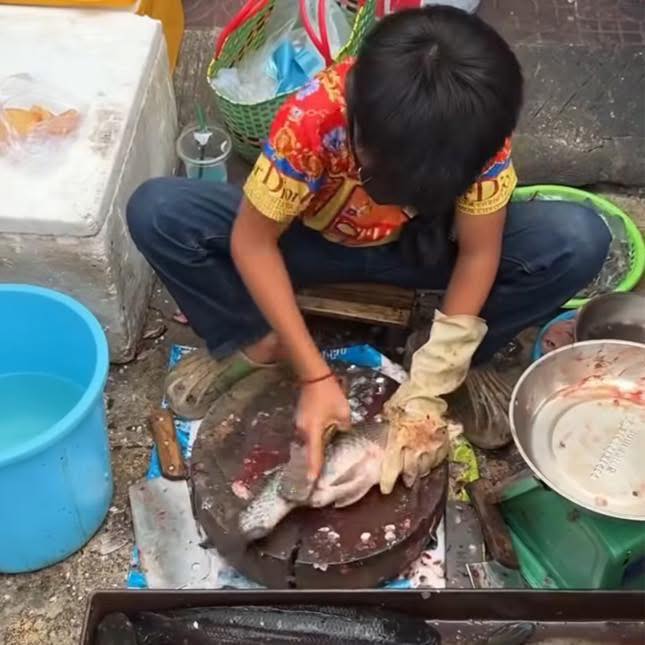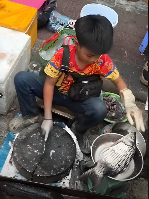 Giữa những âm thanh ồn ã của chợ sáng, thấp thoáng dáng một cậu bé nhỏ thó, tay cầm dao, tay giữ chặt con cá trơn nhớt. Đôi tay thoăn thoắt, ánh mắt tập trung, khuôn mặt non nớt nhưng đã sớm in hằn nỗi lo người lớn.