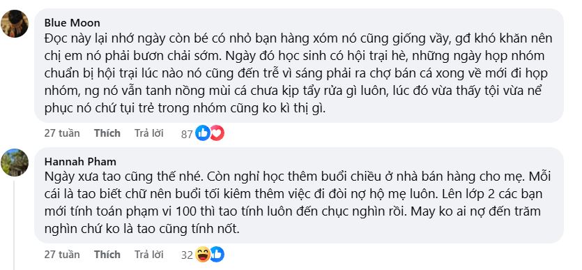 Ở cái tuổi đáng lẽ còn ngồi trong lớp học, vui đùa cùng bạn bè, em đã biết đến mùi tanh của cá, mùi khổ của đời và cả giá trị của đồng tiền. Em buộc phải trưởng thành, phải tính toán hôm nay bán được bao nhiêu, ngày mai ăn gì, nếu nghỉ làm thì ở đâu.