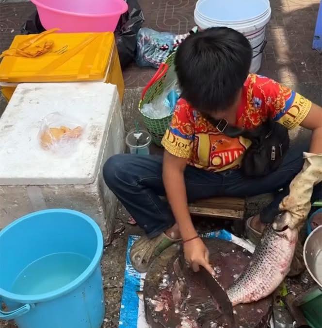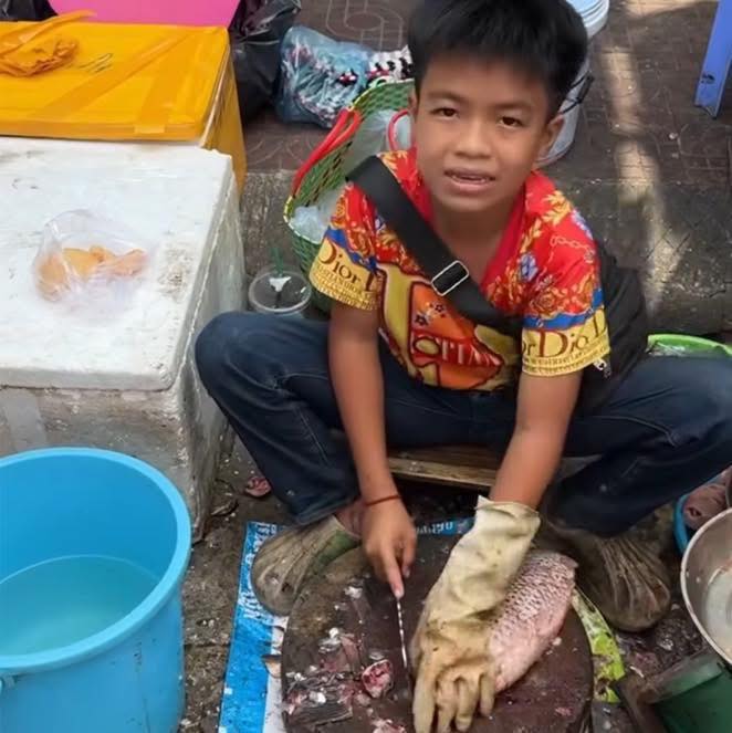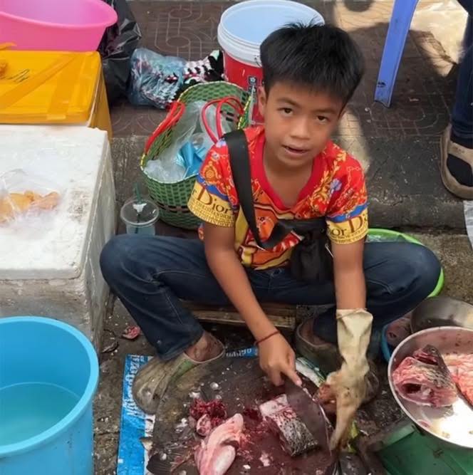 Giữa những âm thanh ồn ã của chợ sáng, thấp thoáng dáng một cậu bé nhỏ thó, tay cầm dao, tay giữ chặt con cá trơn nhớt. Đôi tay thoăn thoắt, ánh mắt tập trung, khuôn mặt non nớt nhưng đã sớm in hằn nỗi lo người lớn.