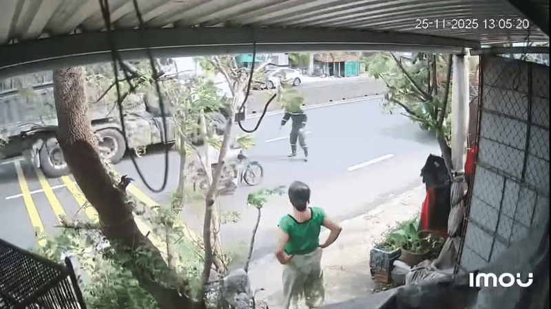 Trong khoảnh khắc được camera an ninh nhà dân ghi lại, một chiếc xe container mất lái lao nhanh trên đường và có khả năng đâm vào chiếc xe máy đang di chuyển cùng hướng. Đúng lúc đó, một chiến sĩ mặc trang phục PCCC và CNCH đã nhanh chóng lao đến, kéo người điều khiển xe ra khỏi vùng nguy hiểm.