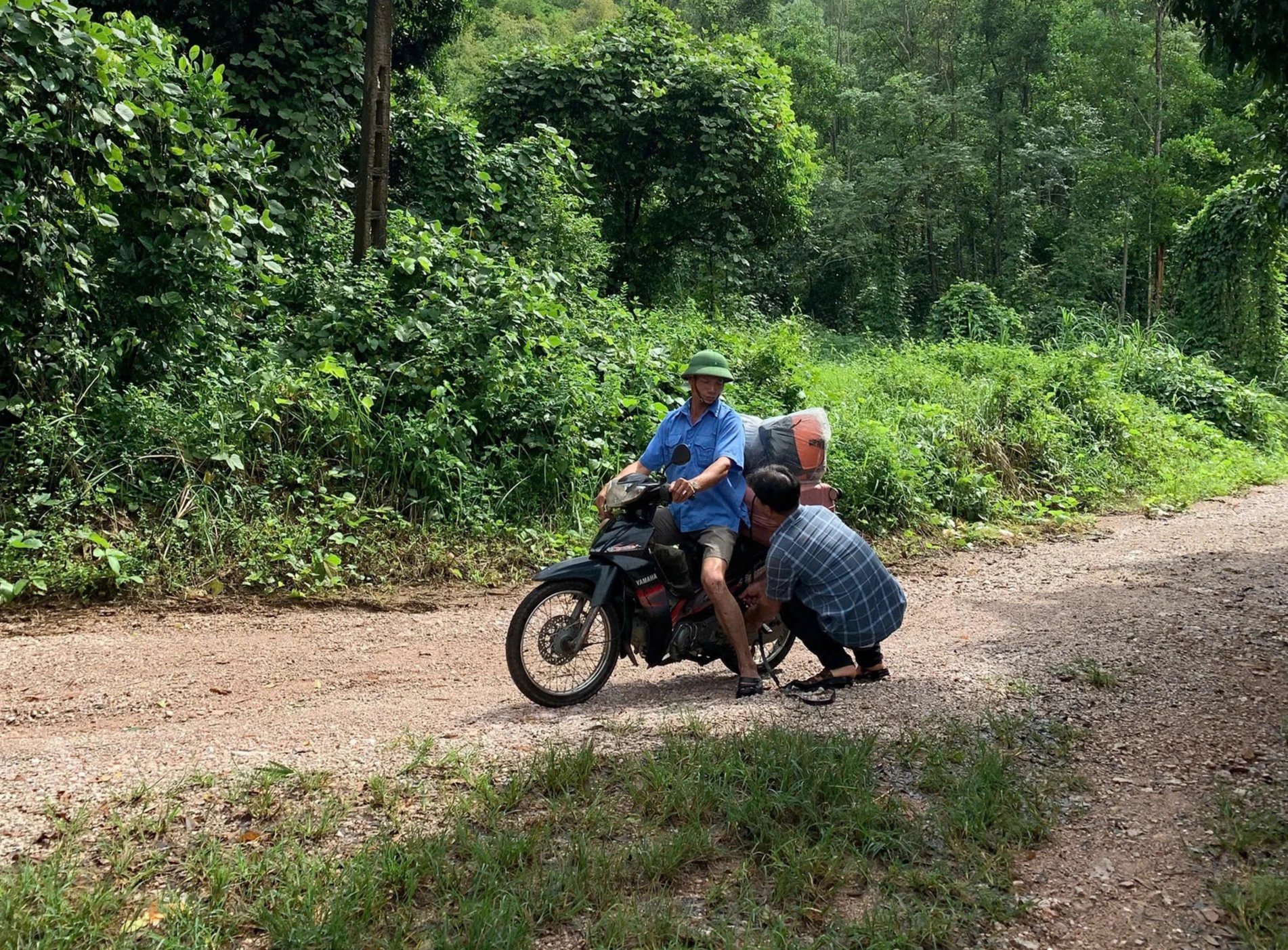 Sau đó, người cha lại quay về, dắt xe máy cũ, cõng con vượt qua đoạn đồi dốc. Cuối cùng, khi ánh nắng hiếm hoi ló lên giữa cơn mưa tàn, hai cha con cũng đến được đường lớn, rồi kịp giờ ra sân bay.