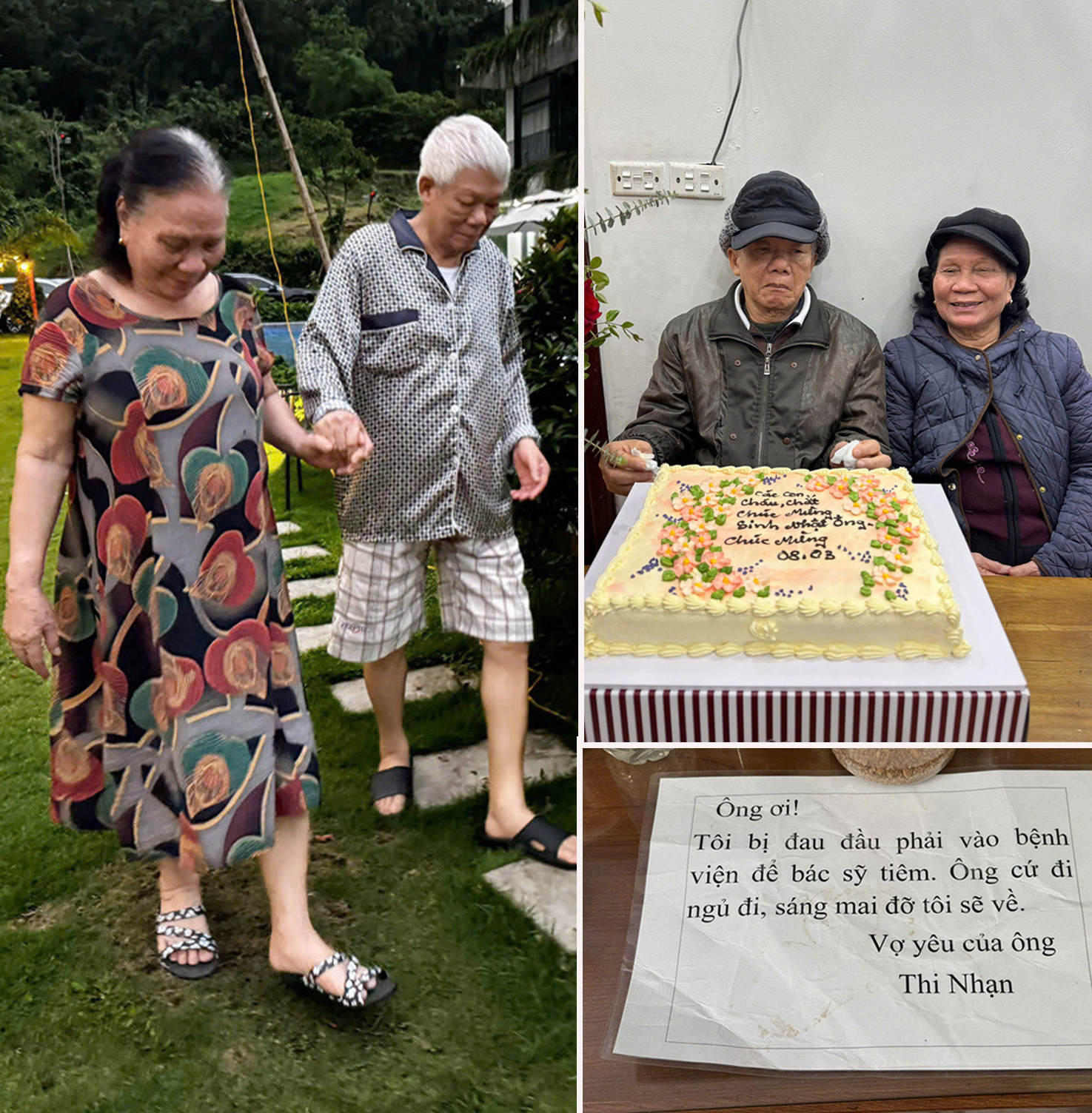 Khi còn minh mẫn, ông Nhân quán xuyến nhà cửa, bếp núc để bà có thời gian nghỉ ngơi, đi chùa. Từ năm 2020, ông Nhân bắt đầu “lúc nhớ lúc quên” nhưng chưa từng quên cách yêu thương và chăm sóc bạn đời.