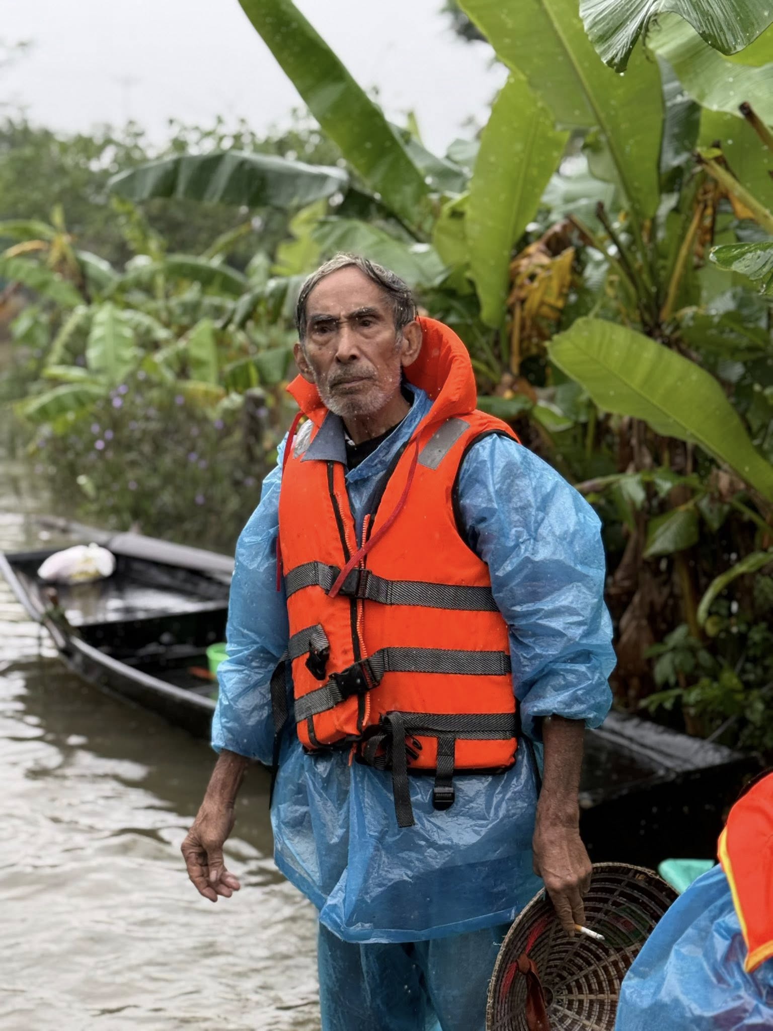 Sau nhiều ngày đêm không nghỉ, sáng nay, khi mọi việc tạm ổn, một bác mới nhờ anh Nguyễn Quân Dũng – người trong đội cứu hộ – đưa về thăm nhà. Căn nhà nhỏ của bác vẫn chìm trong nước, nhưng điều khiến ai cũng nghẹn lòng là nụ cười rạng rỡ của bác khi vừa bước vào hiên.