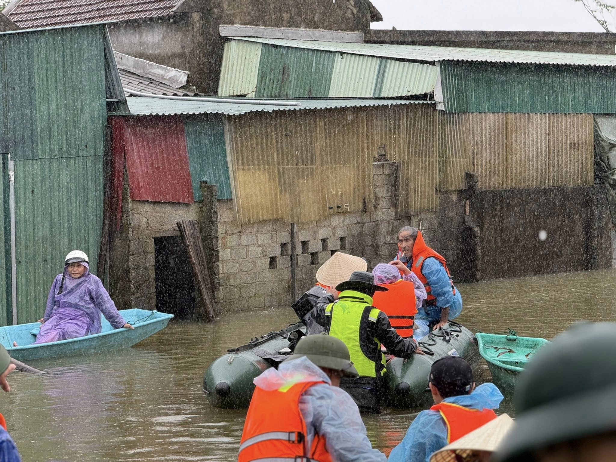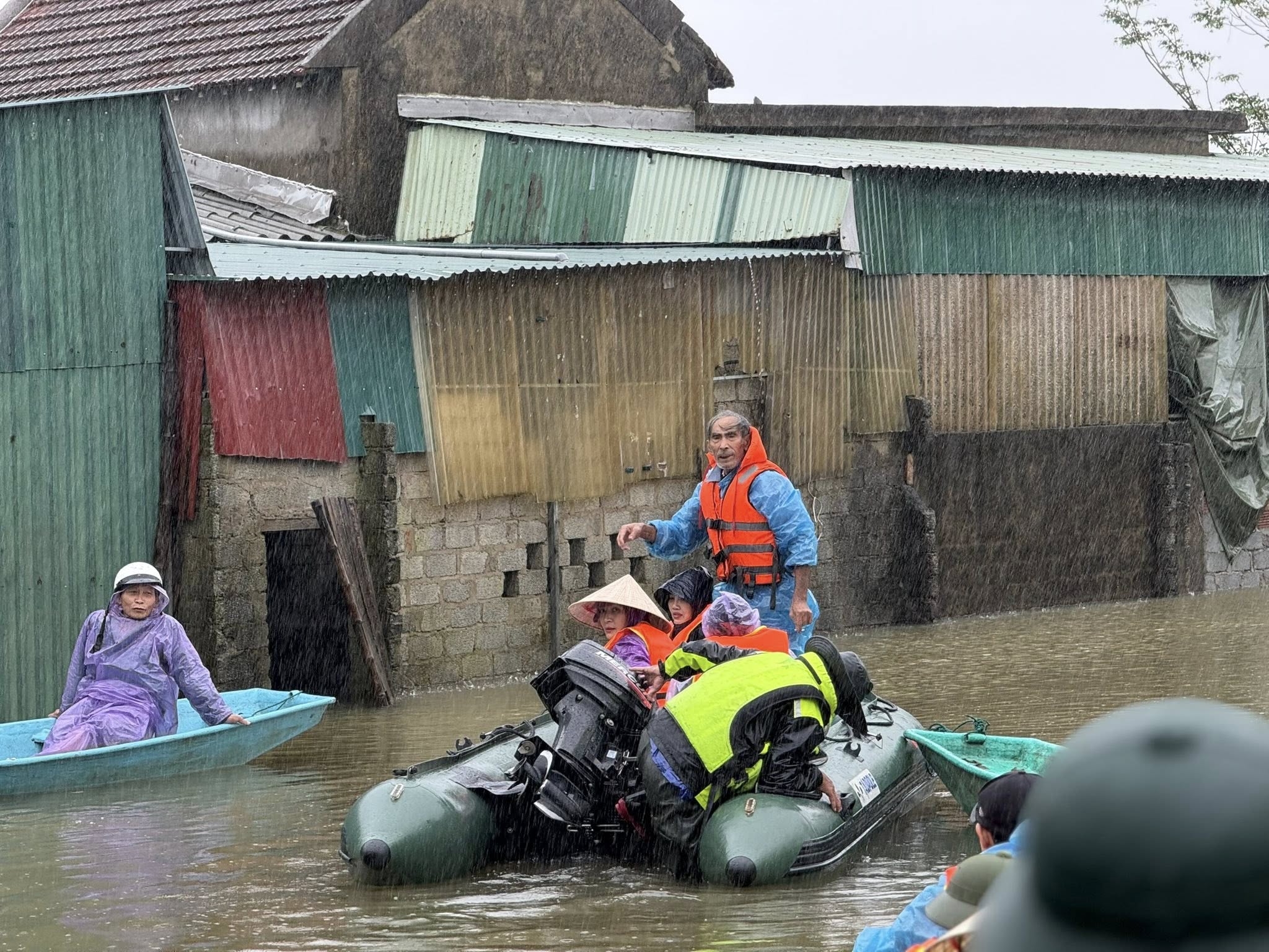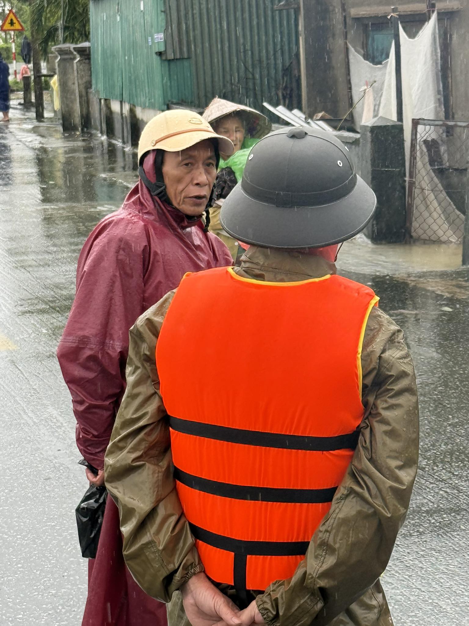Đó là hai bác trưởng thôn ở xã Cẩm Thành (huyện Cẩm Xuyên, Hà Tĩnh). Dù tuổi đã cao, nhưng từ khi nước ngập đến nay, người dân chỉ thấy họ lo toan khắp nơi – khi thì hướng dẫn bà con sơ tán, khi lại ra tận đường lớn đón đoàn cứu trợ.