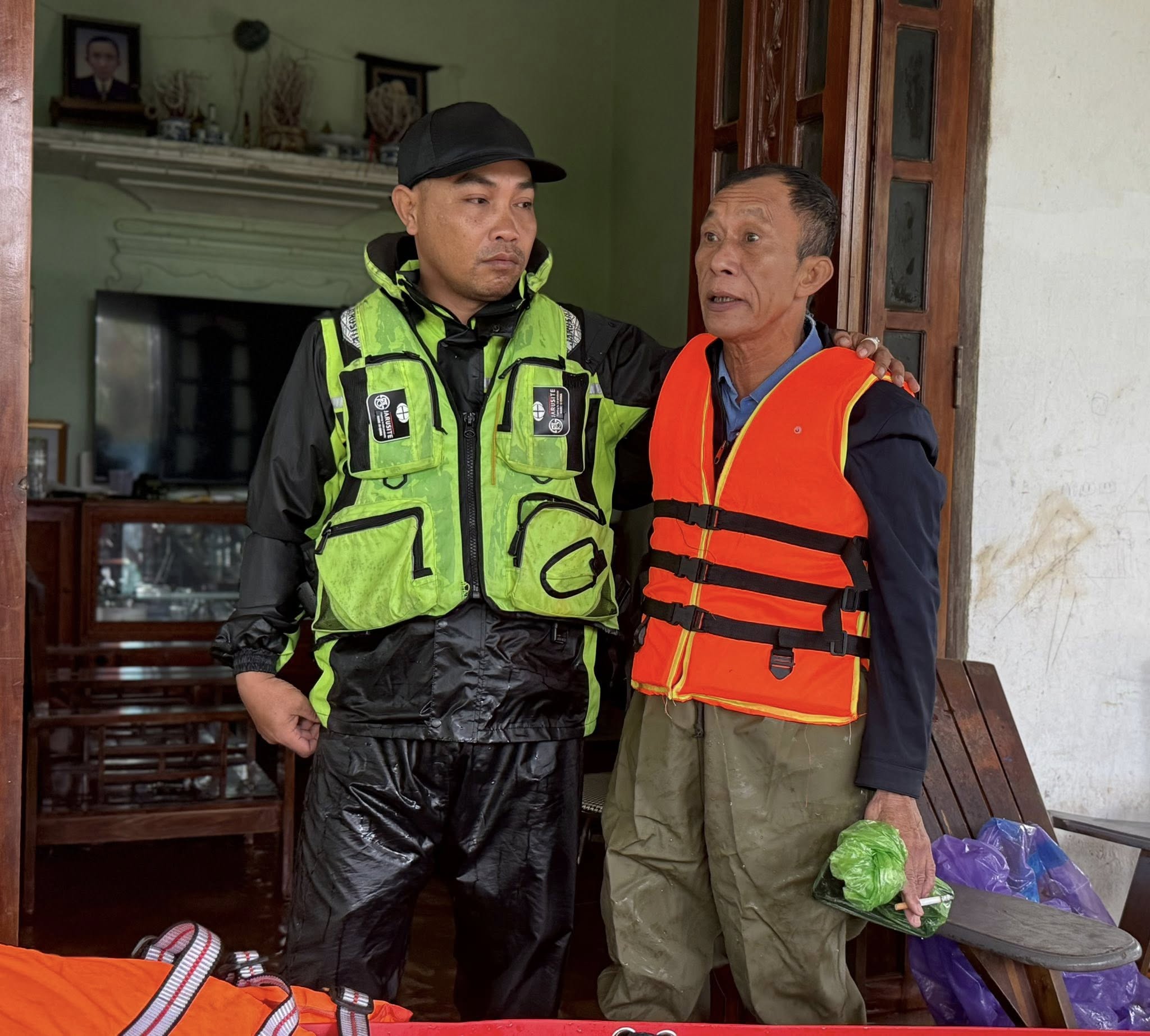 “Đội cảm thấy nể phục hai bác trưởng thôn này nhất. Cả mấy ngày mưa lũ, chỉ thấy bác lo cho dân, ra tận đường lớn vẫy đoàn cứu trợ để xin lương thực về cho bà con. Hôm nay bác mới nhờ tôi đưa về thăm nhà, nhìn nụ cười của bác mà ai cũng thương.”