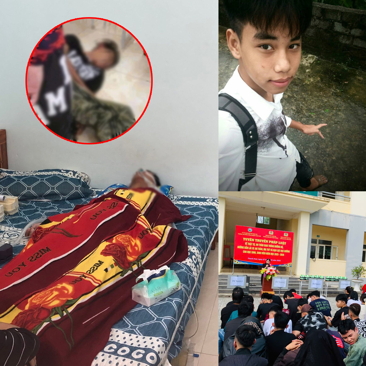 Khi nam sinh đổ gục xuống sàn, bất tỉnh, nhóm này mới bỏ đi. Giáo viên phát hiện sự việc đã gọi xe cấp cứu đưa em đến bệnh viện gần trường sơ cứu. Nam sinh sau đó được chuyển tuyến xuống Bệnh viện Nhi Thanh Hóa trong tình trạng bất tỉnh, xuất huyết não.