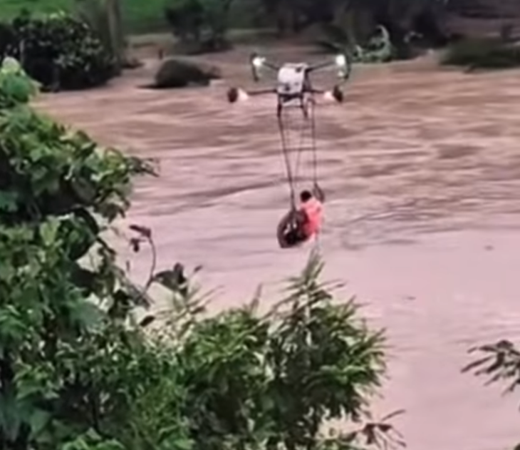 Nghẹt thở cảnh dùng drone cứu người mắc kẹt trên ốc đảo giữa bốn bề lũ dữ
