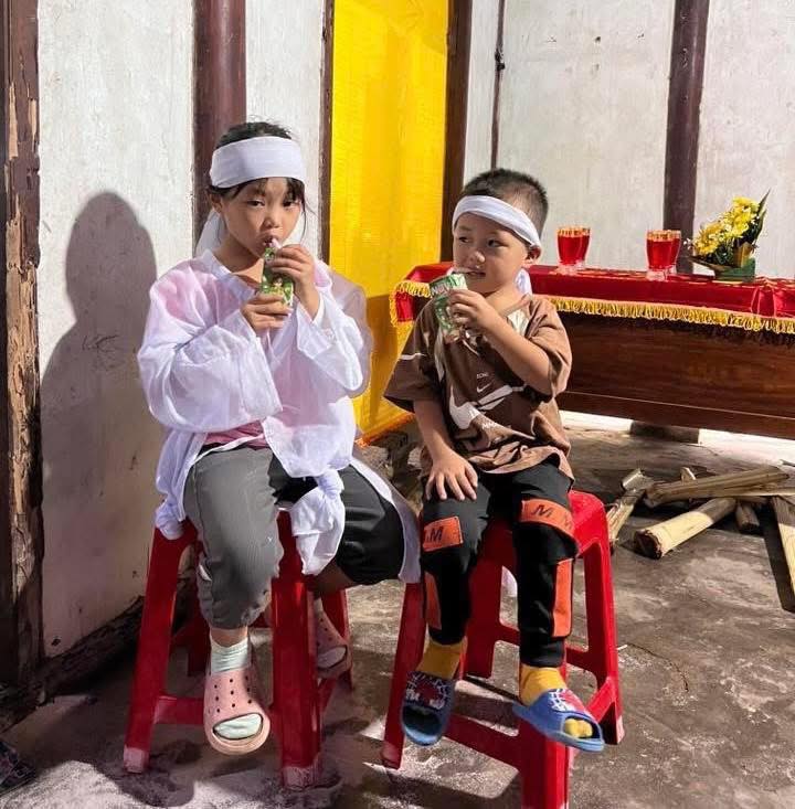 Hai đứa con nhỏ, đứa lớn chỉ vừa học tiểu học, đứa bé chưa kịp gọi “mẹ” cho tròn tiếng, giờ ngồi lặng bên linh cữu, tay vẫn cầm hộp sữa như một thói quen của những ngày có mẹ. Hình ảnh ấy khiến hàng triệu trái tim đau thắt.