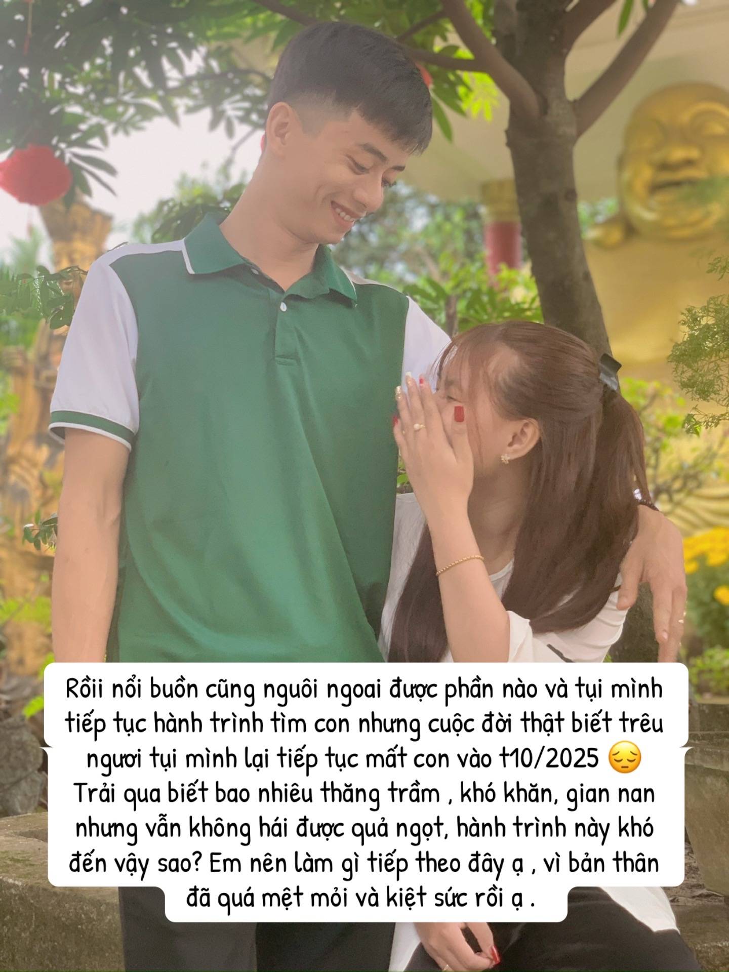 Năm 2023, hai vợ chồng trẻ ấy đã phải trải qua hai lần mất con chỉ trong một năm. Nỗi đau ấy tưởng như đủ khiến người ta gục ngã. Nhưng họ vẫn nắm tay nhau, cùng nuôi hy vọng sẽ có một ngày được nghe tiếng con gọi “ba mẹ”.