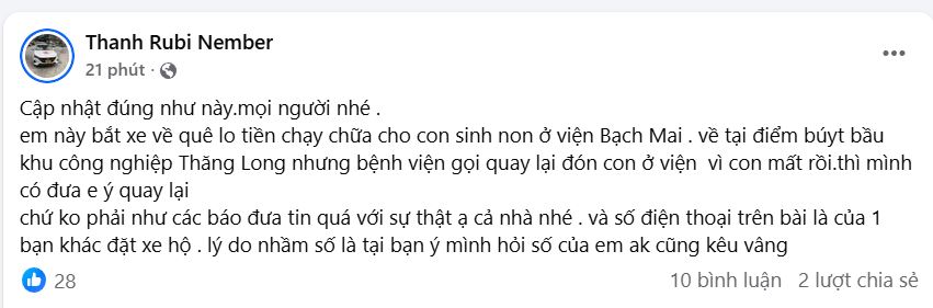 “Đến hiện tại có rất nhiều người liên hệ với mình để muốn giúp đỡ hai bố con, nhưng mình cũng chỉ có số điện thoại của người đặt xe hộ. Hy vọng bạn ấy đã đưa cháu bé về quê và sớm vượt qua nỗi đau này”, anh nói.