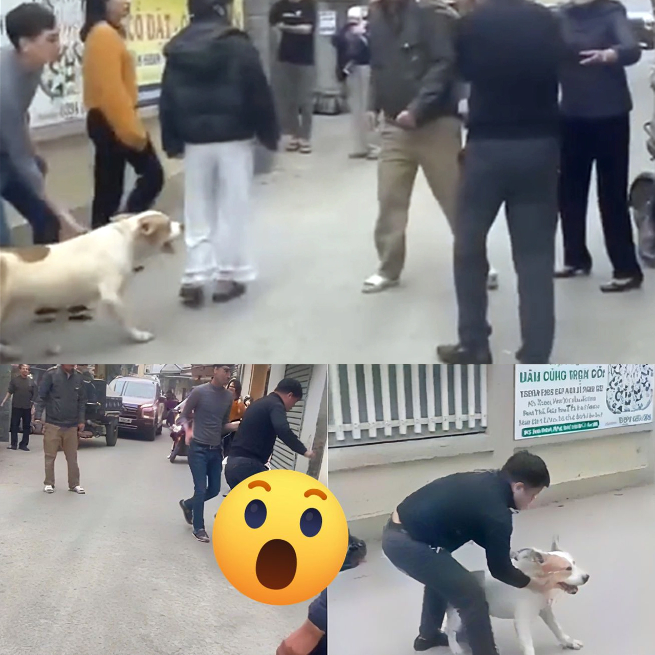 Khi hai người đàn ông đang ẩu đả, một nam thanh niên dắt theo con chó dữ xuất hiện. Người này đẩy con chó vào đám đông, chó dữ bất ngờ tấn công dữ dội một phụ nữ.