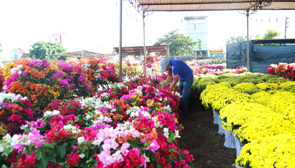 Không gian khu vực tổ chức Chợ hoa Xuân phải có hạng mục trang trí chung; các gian hàng phải được phân khu vực cụ thể. Trong đó, ưu tiên bố trí các hộ, cơ sở sản xuất trên địa bàn Thành phố, bố trí tại mặt bằng các vị trí thuận lợi, mỗi khu có hạng mục trang trí, quảng bá riêng. Các gian hàng phải được bố trí cơ bản đồng bộ về diện tích, có biển thông báo xuất xứ nơi sản xuất theo quy cách quy định, đặt cùng một vị trí đảm bảo đồng bộ. Diện tích bố trí các gian hàng phải được giới hạn theo sơ đồ. Nghiêm cấm các trường hợp lấn chiếm vỉa hè lòng đường trái phép, làm mất, hư hỏng các công trình công cộng, xả rác không đúng nơi quy định, dựng lán lều, căng mắc bạt... gây mất mỹ quan đô thị, ảnh hưởng an toàn giao thông và các hoạt động chung tại khu vực tổ chức Chợ hoa Xuân. Việc bố trí địa điểm các gian hàng phải được bắt thăm công khai, minh bạch; được giao kết bằng hợp đồng, ghi rõ diện tích thời gian, địa điểm sử dụng, số phí phải nộp, trách nhiệm giữa các bên.