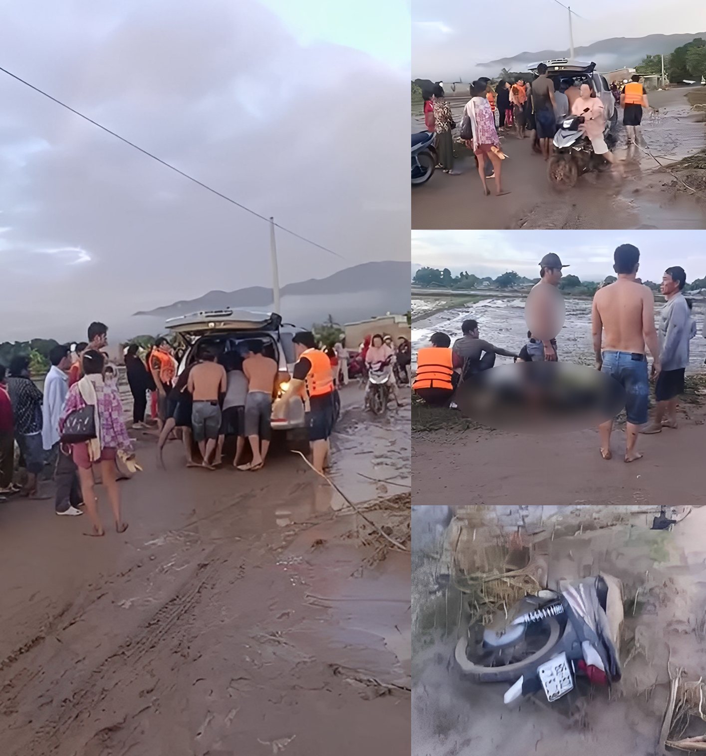 Gia đình bé T gồm 3 người đã tháo chạy ra khỏi nhà nhưng dòng nước xiết cuốn trôi cả 3. Lúc này, bố mẹ may mắn bám được vào thân cây ven đường thoát nạn, riêng bé T bị cuốn trôi mất tích.