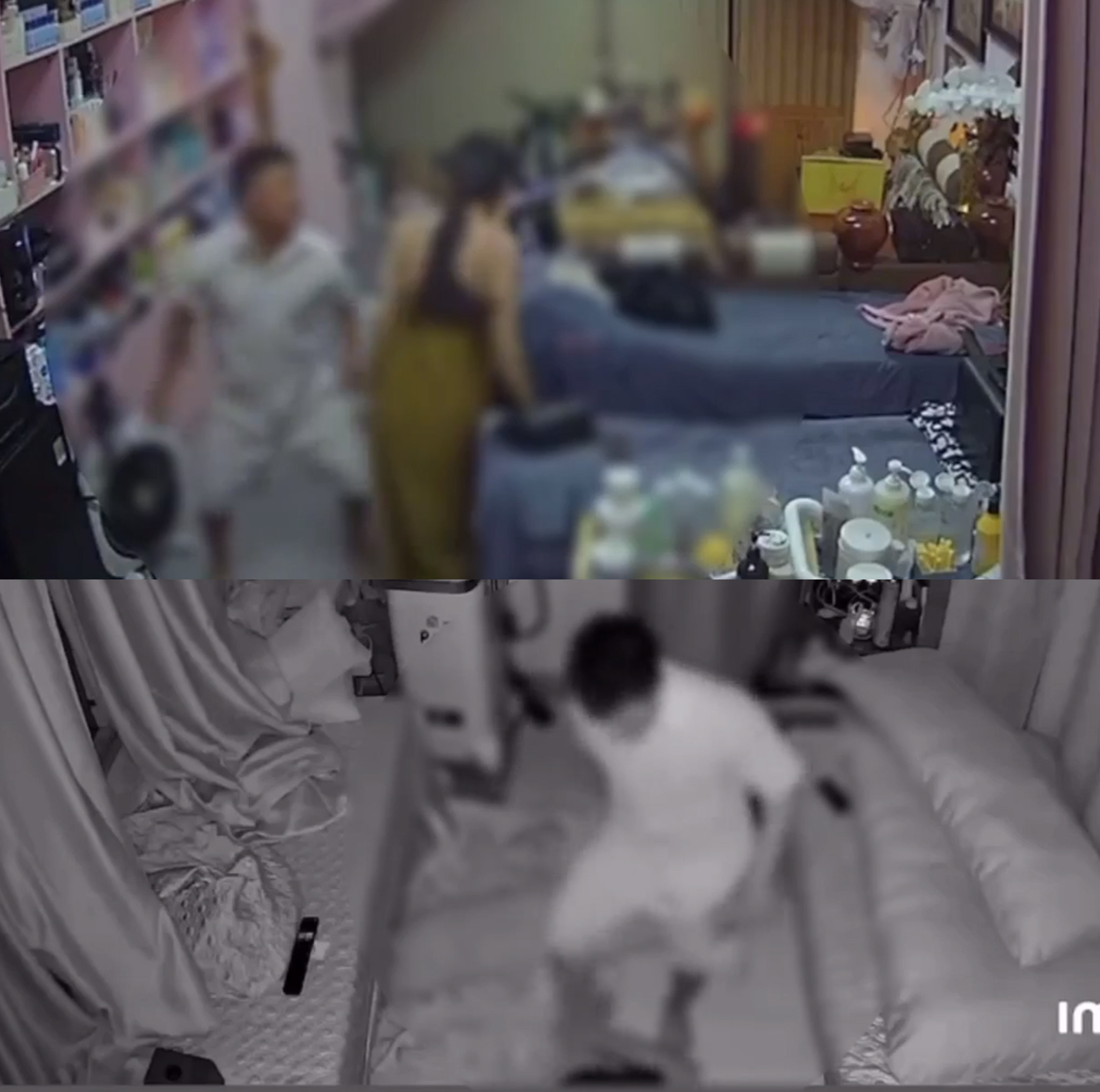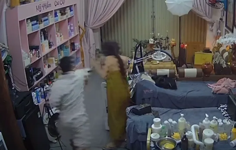 Nội dung clip đăng tải trên trang cá nhân bà C.T.T ghi lại cảnh một người đàn ông mặc quần đùi, áo sơ-mi cộc, xồng xộc đi vào quán. Sau khi vào phòng ngủ đánh liên tục một thiếu niên, người đàn ông quay tiếp tục đá đấm liên tục vào người, vào đầu bà C.T.T.