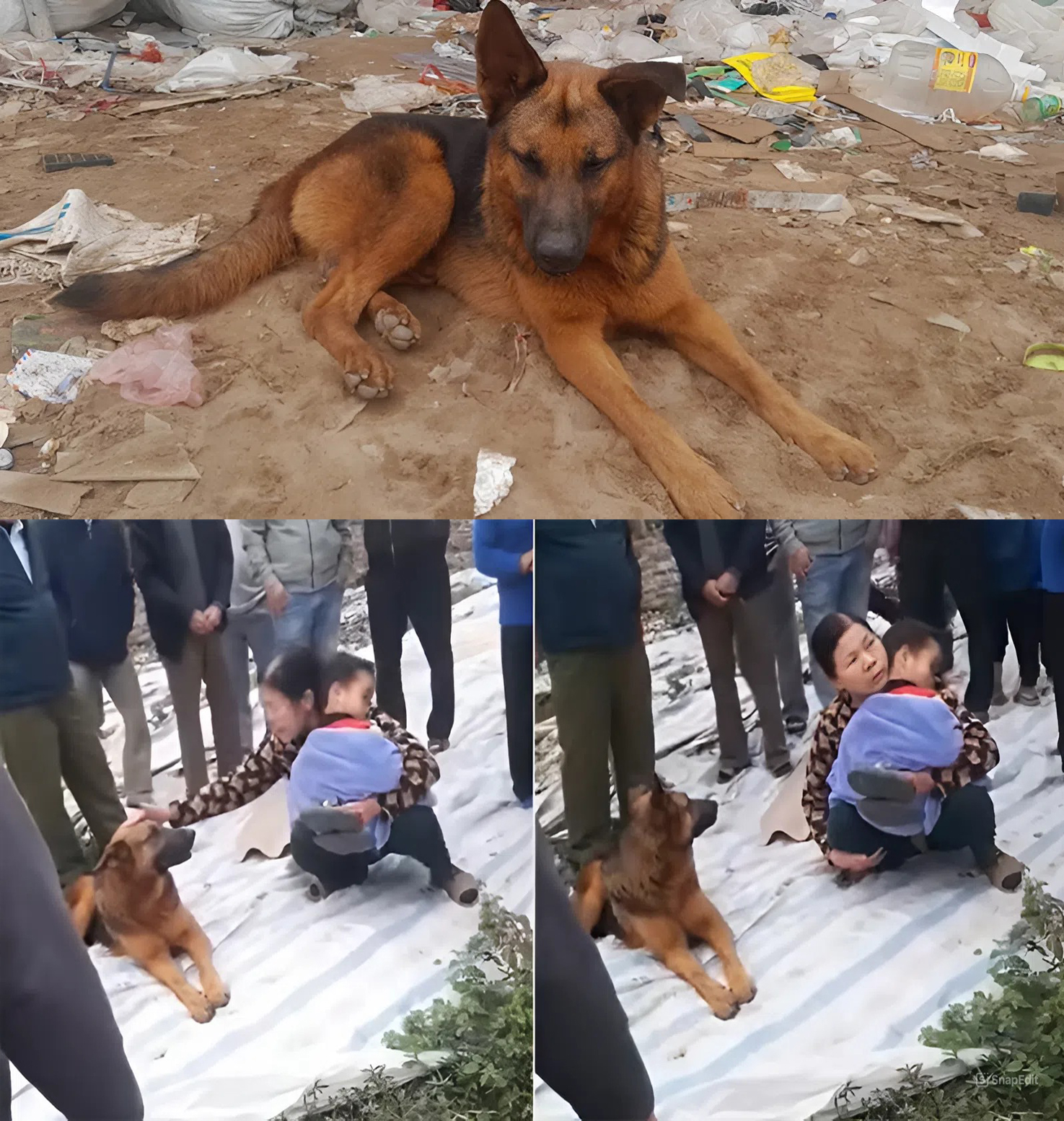 Theo đó, loạt ảnh, video ghi lại cảnh người dân tìm thấy bé trai đi lạc, bên cạnh đó là chú chó quấn quýt không rời. Ngay cả khi có người lạ tìm đến, chú chó không hề hoảng sợ, vẫn ở bên bảo vệ “cậu chủ nhỏ”.