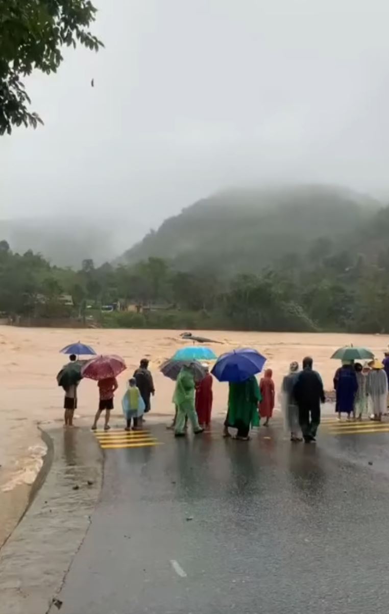 Tài xế đến giờ mất tích, lực lượng biên phòng – công an – người dân vẫn đang tìm kiếm trong điều kiện dòng nước vẫn cuộn xiết từng phút.